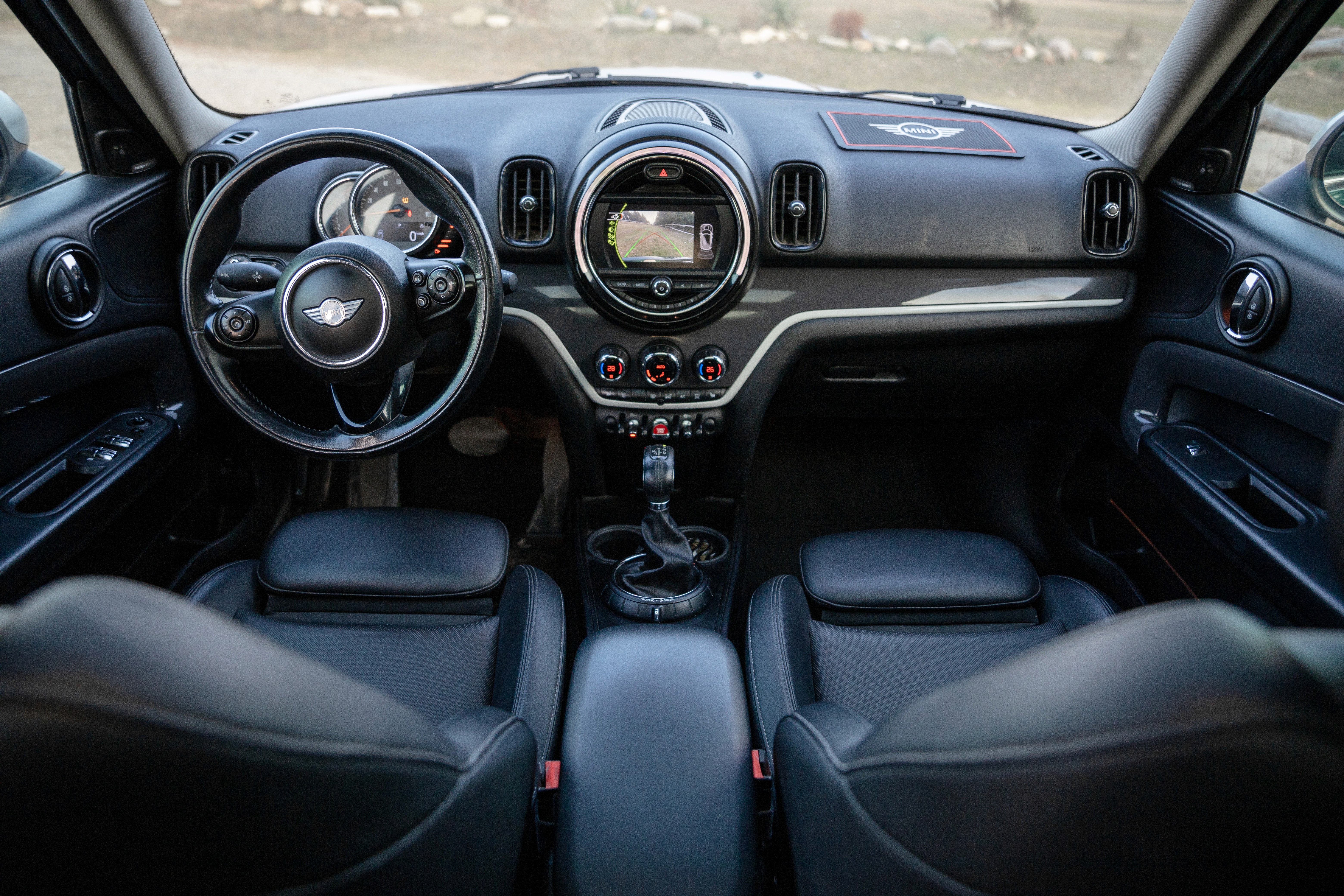 MINI Countryman is a premium crossover. The car can comfortably accommodate five adults. Comfortable seats with high-quality upholstery. To ensure the safety of the driver and passengers, an automatic braking system, airbags (front and side) and even curtain airbags are used.